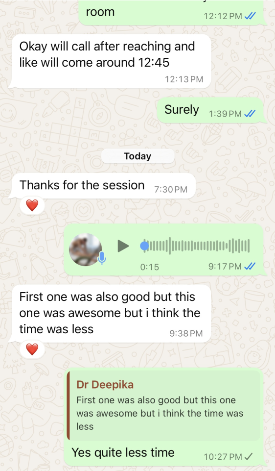Doorstep service, either at your place or hotel. In case you want us to plan it for you. We have hotels booked for specific dates to serve multiple clients but at diff time slots.